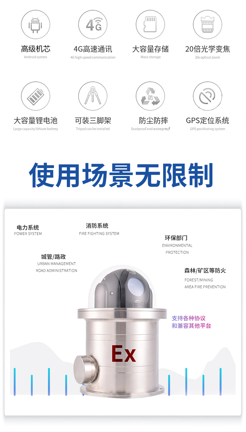 立即咨詢友聯(lián)哨兵5G防爆布控球是一款具備防爆功能的5G布控球產(chǎn)品,專為特定行業(yè)(如石油、煉化、化工、燃?xì)獾任kU(xiǎn)化學(xué)和易燃易爆行業(yè))設(shè)計(jì)。產(chǎn)品內(nèi)置高清攝像機(jī)及高性能鋰電池組,通過5G等無線網(wǎng)絡(luò)方式回傳至控制終端,具備防水防震防爆等特性,攜帶便捷,可快速安裝和收納,完全滿足石油、化工等作業(yè)區(qū)的移動(dòng)巡檢、無人值守、臨時(shí)監(jiān)控、應(yīng)急指揮的應(yīng)用需求。